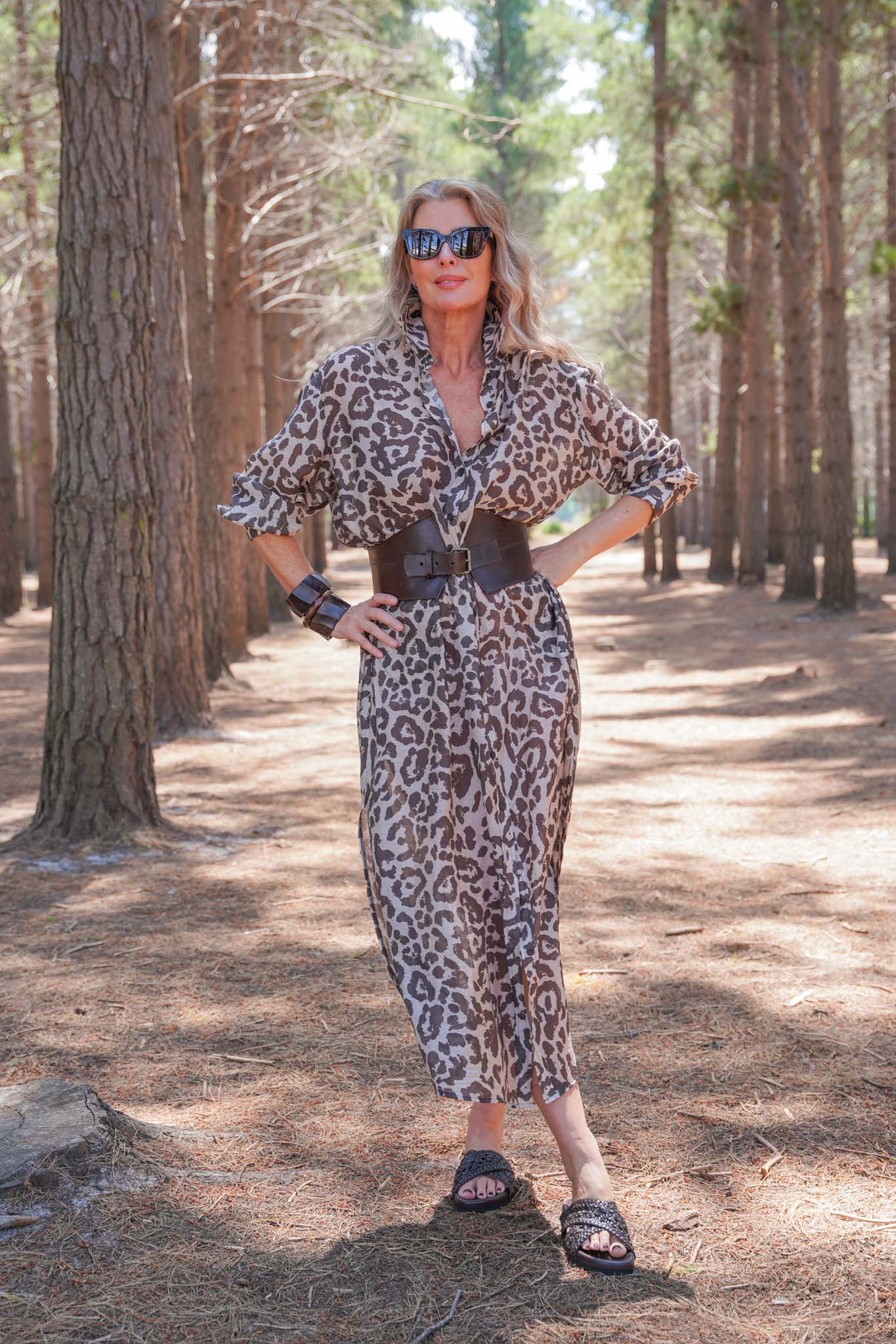 Our Oversize Shirt Dress has an understated elegance & is perfect for whatever you have planned. This comfort meets elegance style features a broad, detachable matching fabric belt, so you can cinch in at the waist or use as it as a wrap tie in your hair. The dropped long, double cuffed sleeves can be rolled up, keeping the silhouette light and breezy, while the full length with side slits at the curved hem, allows for movement. There is a shirt collar with button through to the hem, beautiful gauging at the back bodice & side pockets to add that casual element. This dress also looks stunning worn loose.