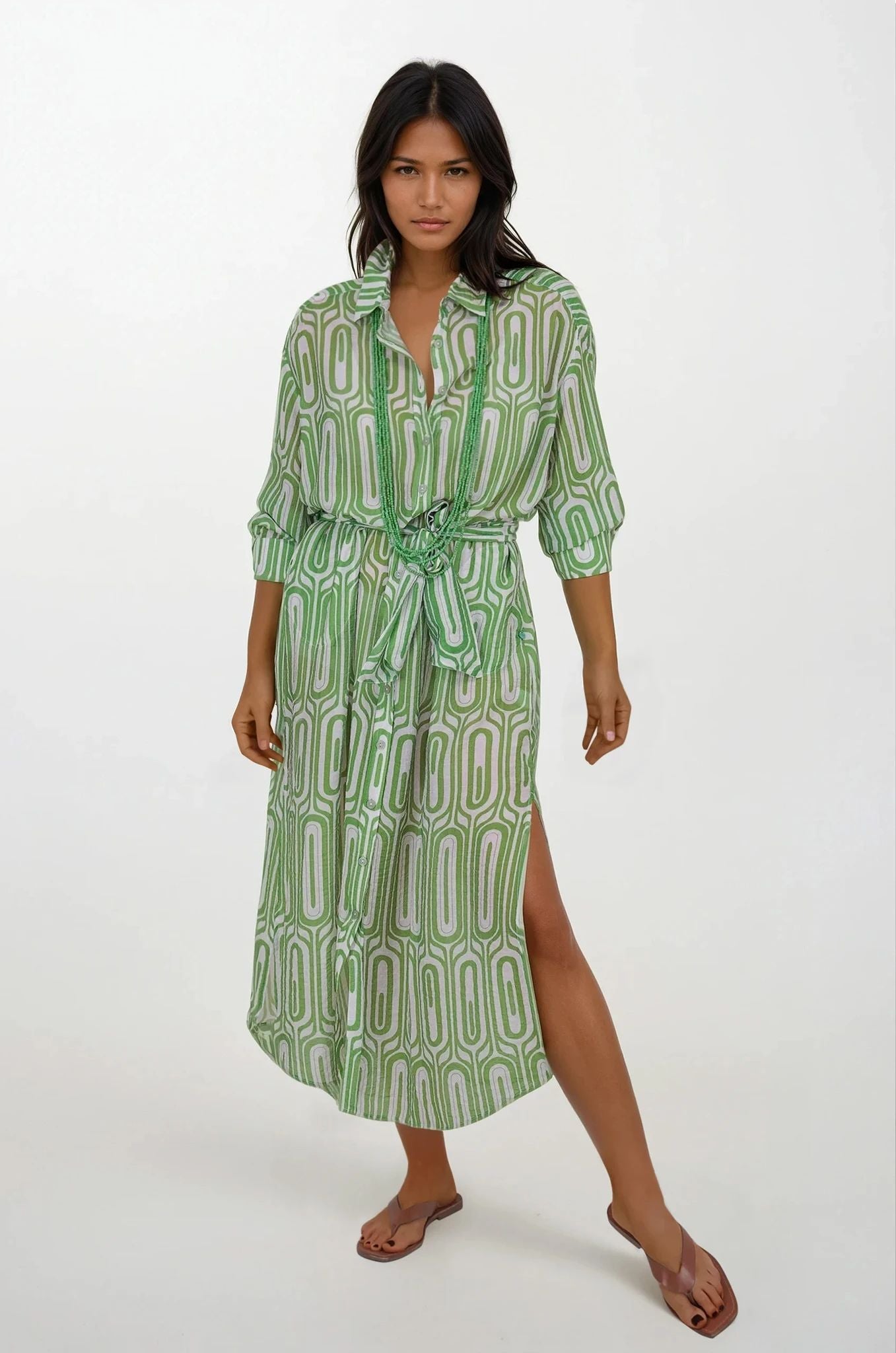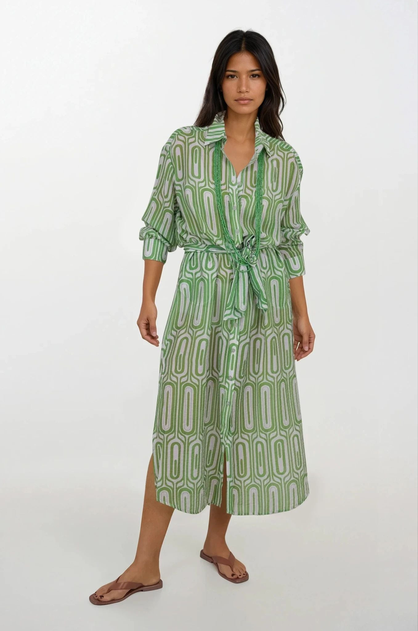Our Oversize Shirt Dress has an understated elegance & is perfect for whatever you have planned. This comfort meets elegance style features a broad, detachable matching fabric belt, so you can cinch in at the waist or use as it as a wrap tie in your hair. The dropped long, double cuffed sleeves can be rolled up, keeping the silhouette light and breezy, while the full length with side slits at the curved hem, allows for movement. There is a shirt collar with button through to the hem, beautiful gauging at the back bodice & side pockets to add that casual element. This dress also looks stunning worn loose.