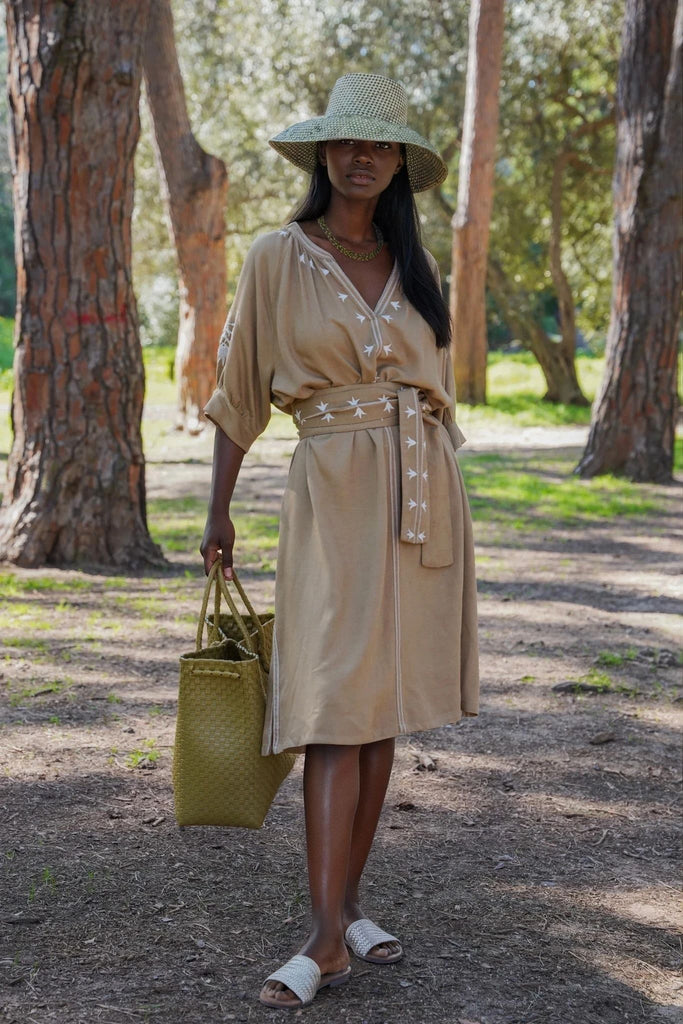 Tan Embroidered Short Kaftan