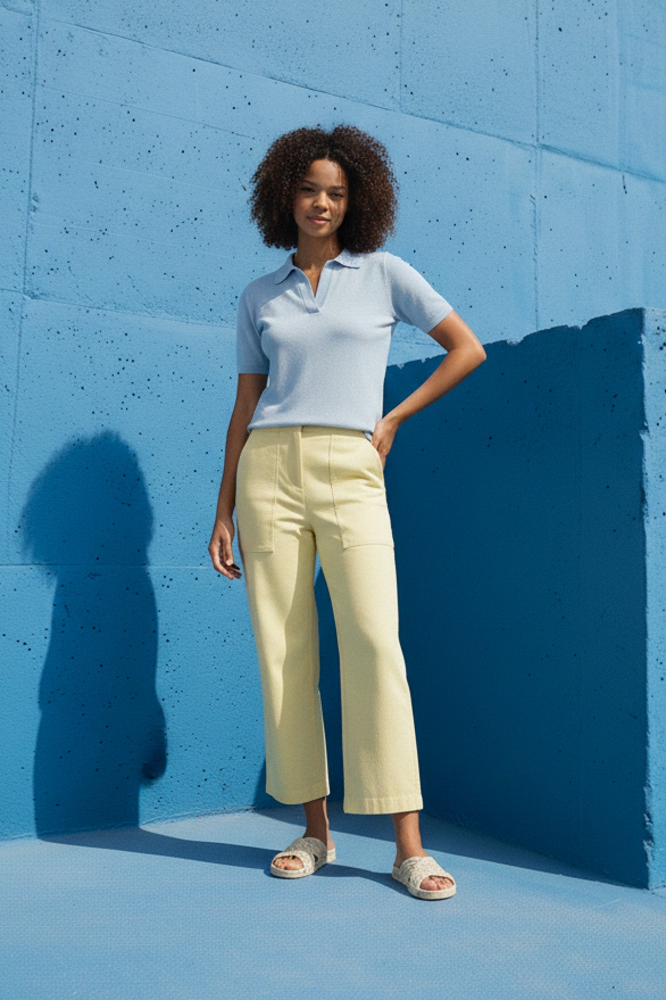 We’ve elevated our knitted tee with a relaxed open collar. This wool blend style sports a slim silhouette that feels contemporary and elegant. Wonderfully lightweight, this versatile piece looks great worn with everything from cropped pants, jeans & midi skirts to over dresses & tops. It has ribbed trims for a premium finish.