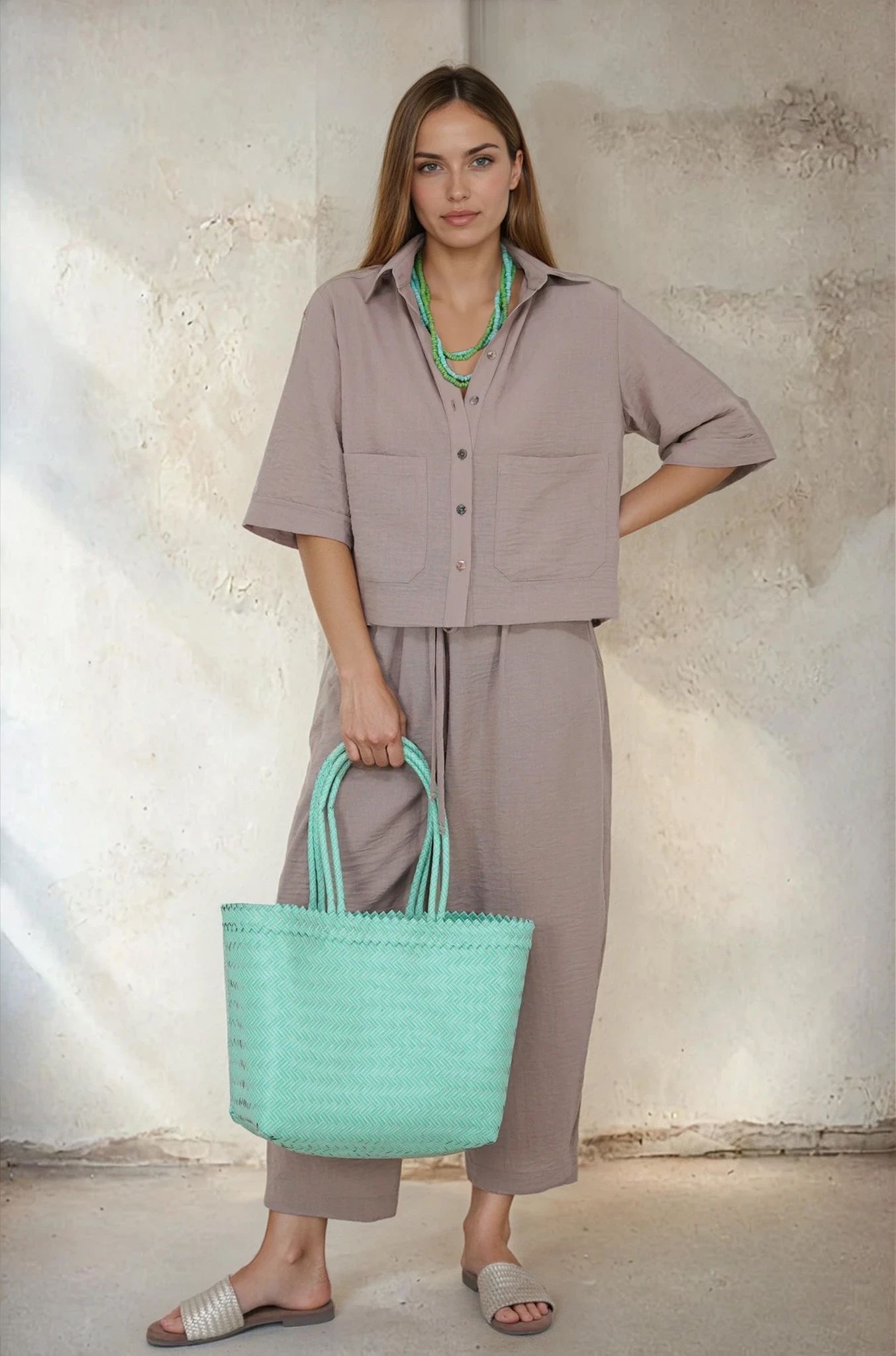 Aqua Reeded Shopper - 0 / Aqua is backordered and will ship as soon as it is back in stock.