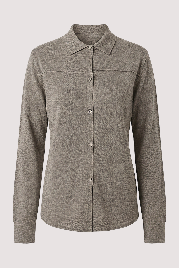 Our knitted shirt is a forever favourite style & makes smart-casual styling so easy. It features a shirt collar, matching button through & long sleeves with a buttoned cuff. We love the vintage looking hem & the vintage looking edging on the front & back upper panels. This classic silhouette is great for layering over simple vests or tees, paired with jeans or midi skirts or teamed with tailored trousers for a smarter look. Crafted from a wool blend for a soft feel, it is still lightweight enough for transitional dressing.