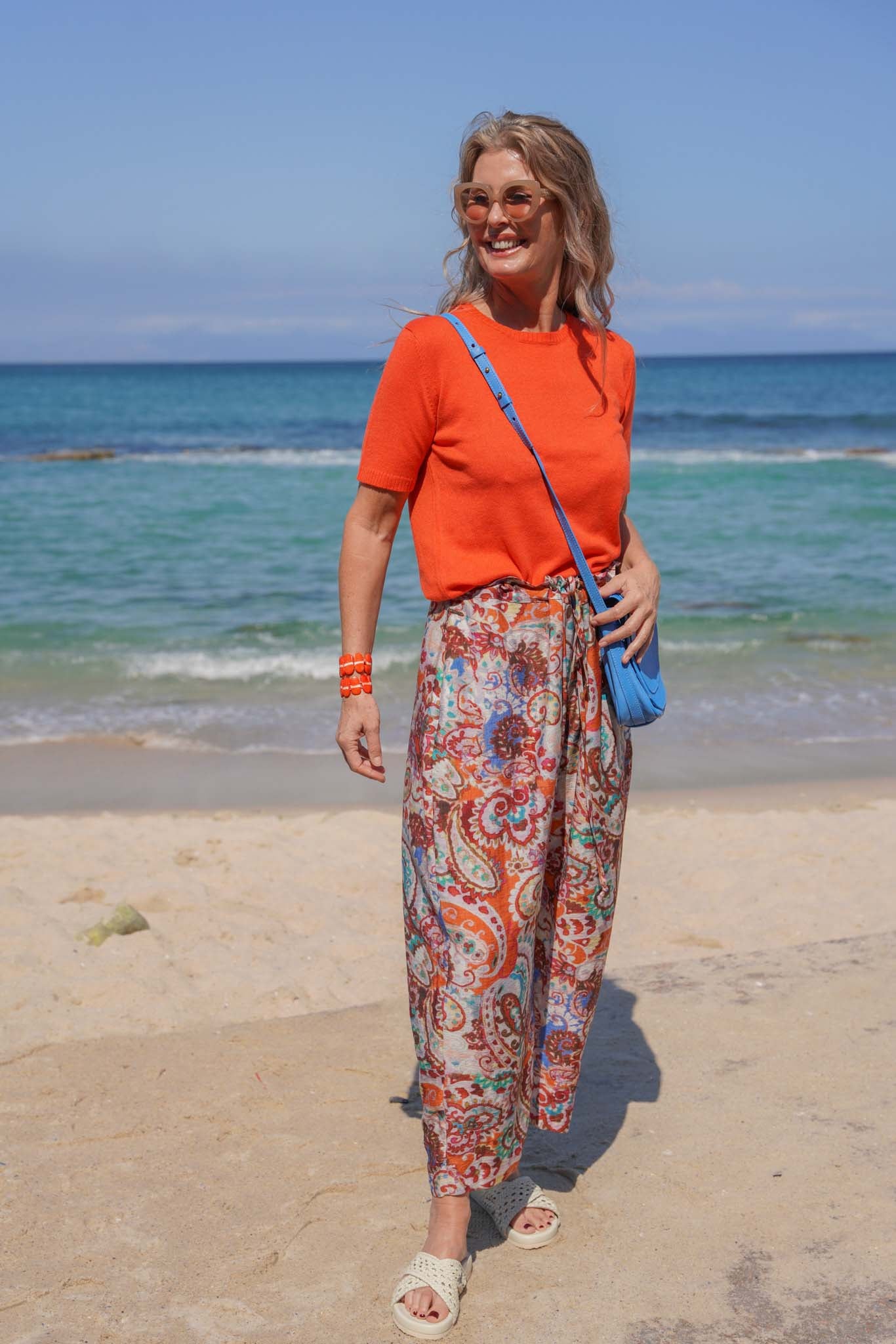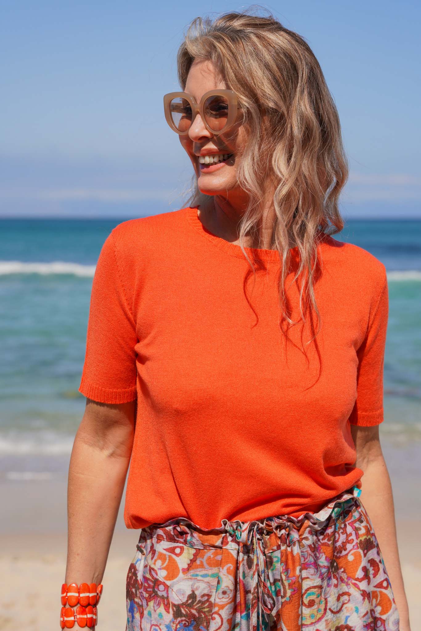 Our wool blend Knitted Tee sports a slim silhouette that feels contemporary and elegant. Wonderfully lightweight, this versatile piece looks great worn with everything from cropped pants, jeans & midi skirts to over dresses & tops. In a classic crew neck, it has ribbed trims for a premium finish. Wear with our Casablanca Poppy Pants for aa fresh Summer look.