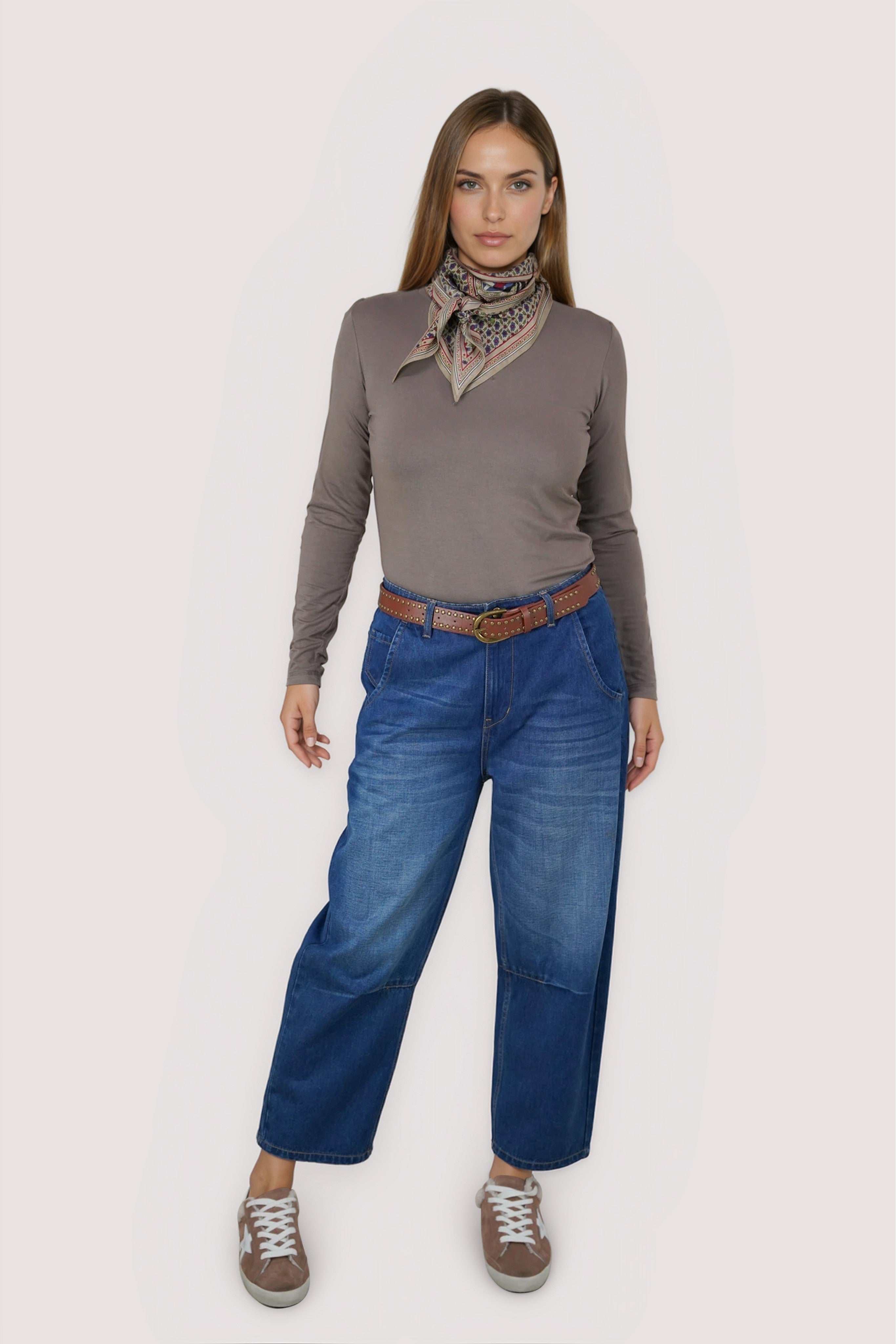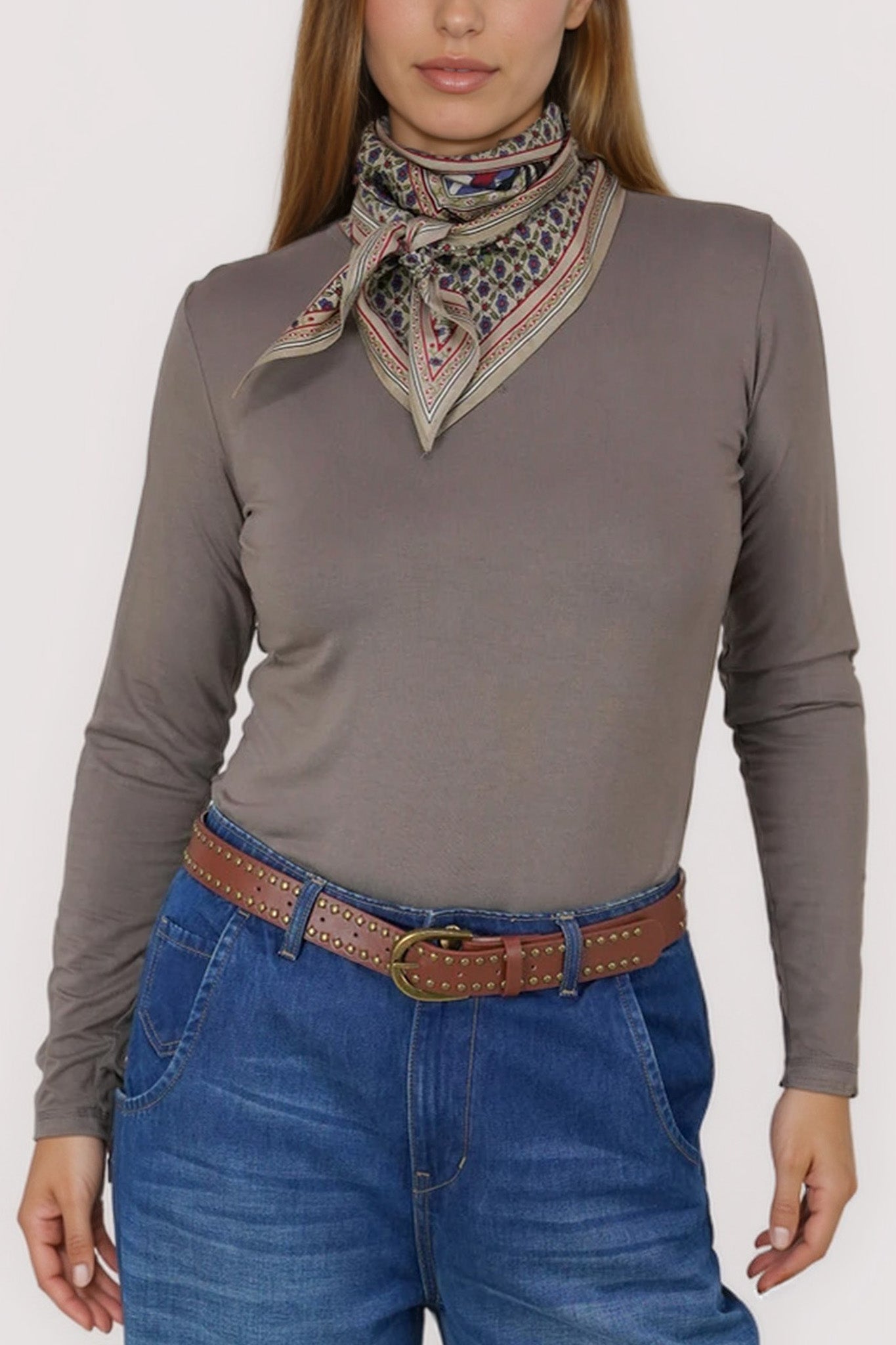 Made from a top quality viscose/spandex blend, our Long Sleeve Tee features a round neck, long sleeves & a slim fit that stretches to fit your body. We love the criss-cross stitch detail in the front. Wear with any of our pants or jeans as a layering option to keep you warm this winter. This is a must have for the season.