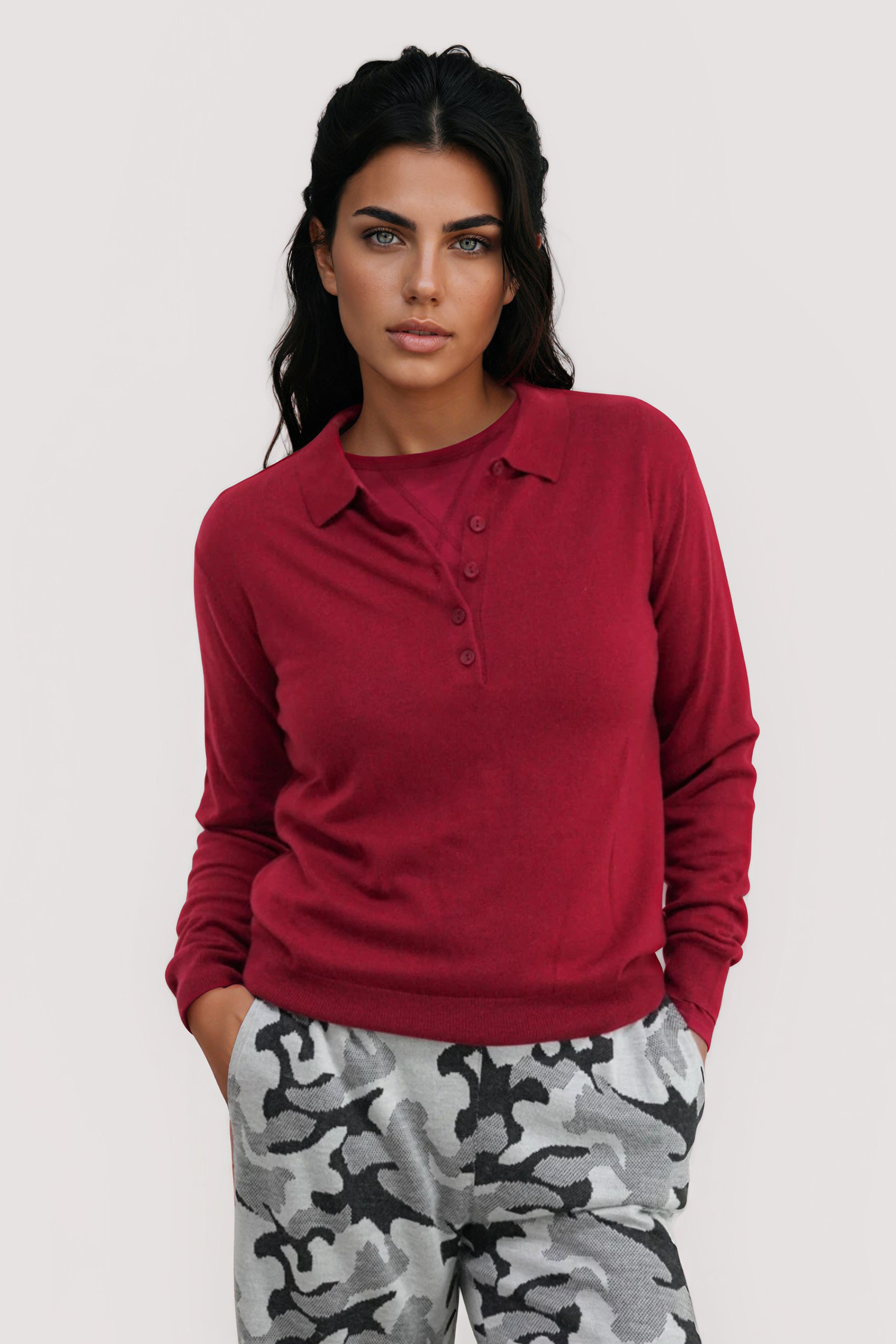 This Winter we have made our knitted Grandpa Pullover with a collar. This is loungewear at it's best! Inspired by a favourite vintage sweatshirt, this wear with everything piece features matching buttons down midway, long sleeves with ribbed cuffs & a ribbed hem. Wear with our Winter Pants or jeans.