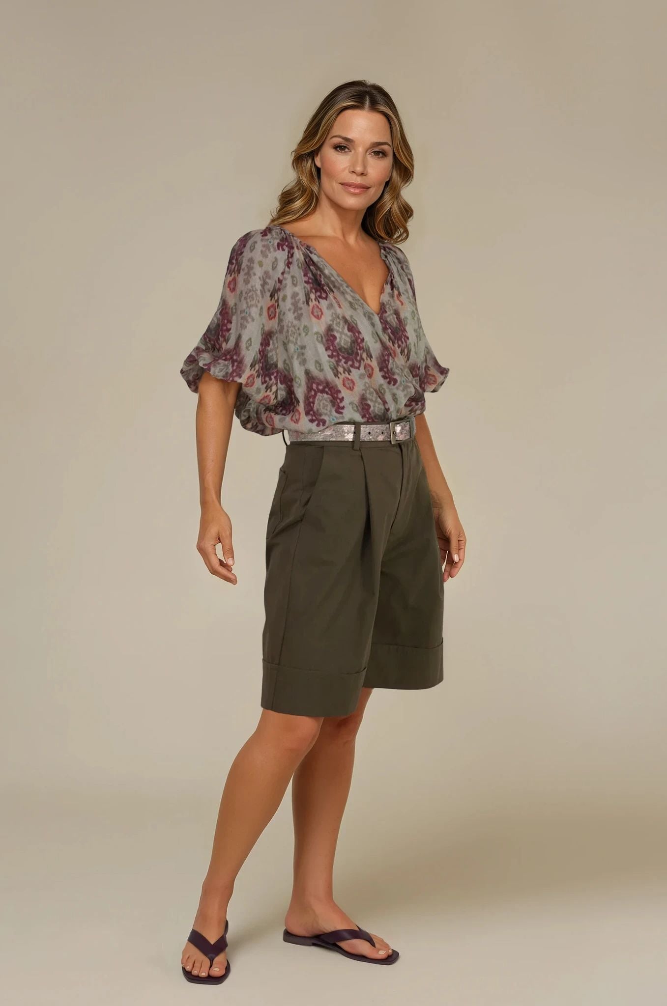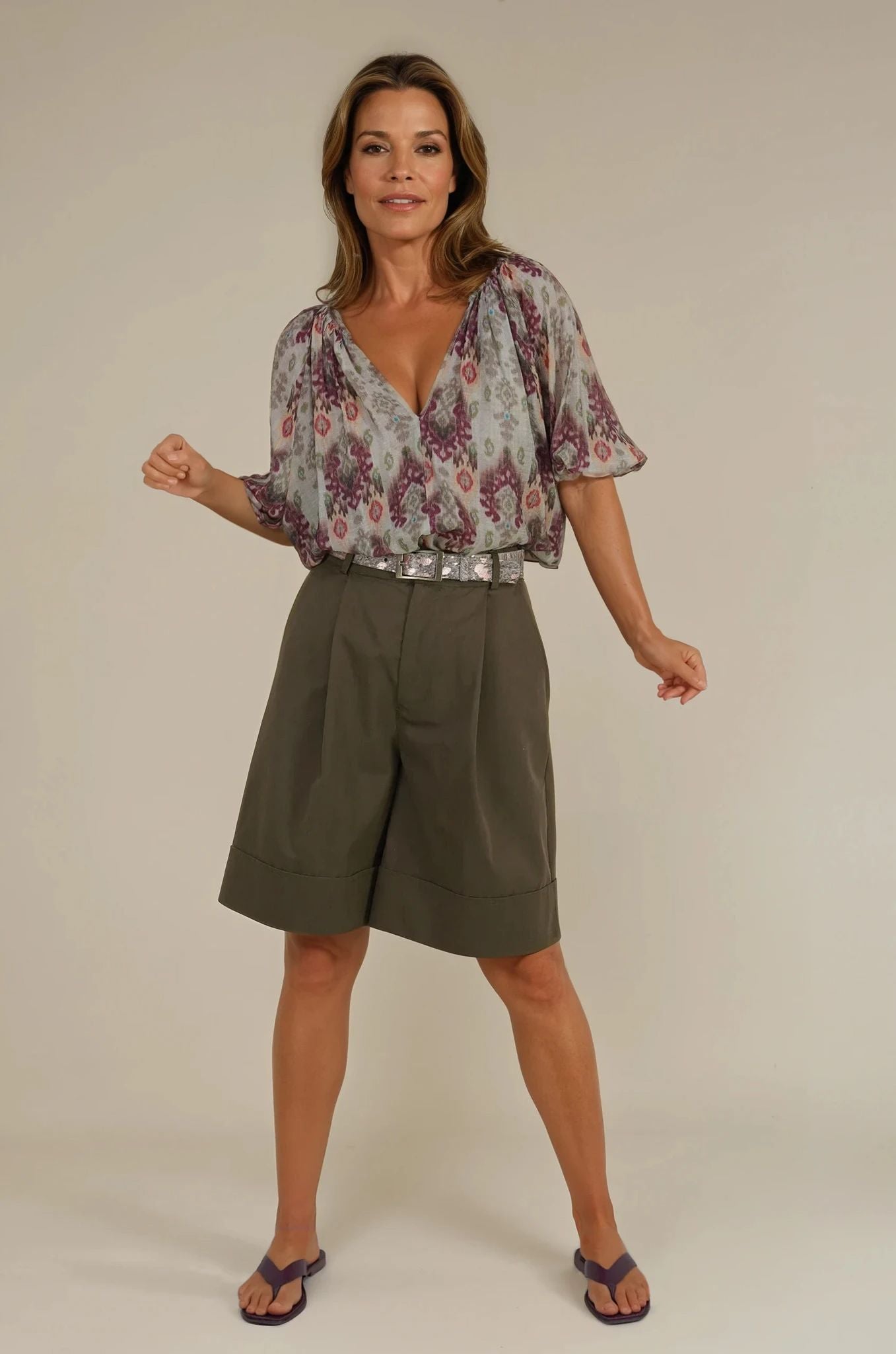 Our Aztec Lazie Top is a winning style for summer. It features a collarless, v notch neckline with feminine gauging, 3/4 raglan blouson sleeves finished off with an elasticated cuff & a straight hemline with side slits, that sits just on your hips, making it a must-have piece. This top looks just as beautiful tucked in or worn out. Wear with our Burgundy Cropped Pull On Pants, our Burgundy Summer Pants or our Burgundy Flare leg Pants. For an all in one jumpsuit look, wear with our Aztec Haylee Pants & for a dress look, wear with our Aztec Ribbon Skirt.