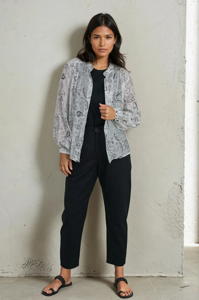 These super soft 5 pocket jeans have a contemporary silhouette with a straight cropped leg, finished off with a true hem. This relaxed style is cropped to show off your bare ankles or serves as full length for petites. The cotton-rich/spandex fabric gives comfort & support, while maintaining the classic black denim look. Tuck in our Black Box T Shirt, our Black Vest, our Black or Pinstripe Lazie Top, our Charcoal Paisley Alex Classic Shirt or our Black Lace Diamond Knitted Tee.
