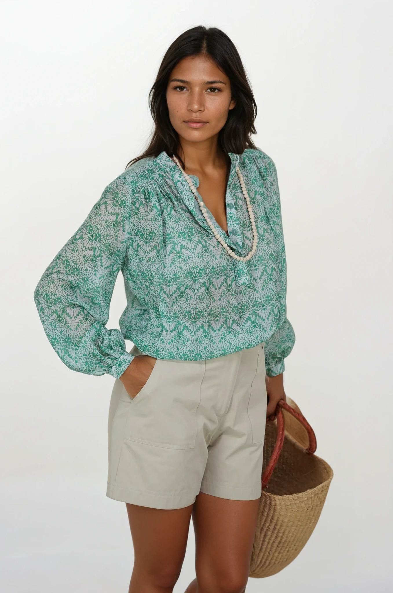Shorts are with us again this Summer & Desray offers a chic and effortless take on summertime dressing. Crafted from 100% cotton, they're designed for a slightly loose fit on the leg & they sit at your natural waist. This style features 2 functioning side pockets, 2 non functional back pockets, a front fastening button & belt loops. Wear with our Turq & Teal Paisley Oversize Shirt & Metallic Woven Slip On Sandals.