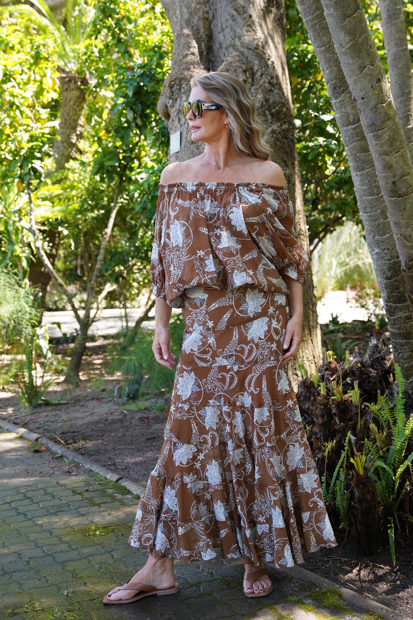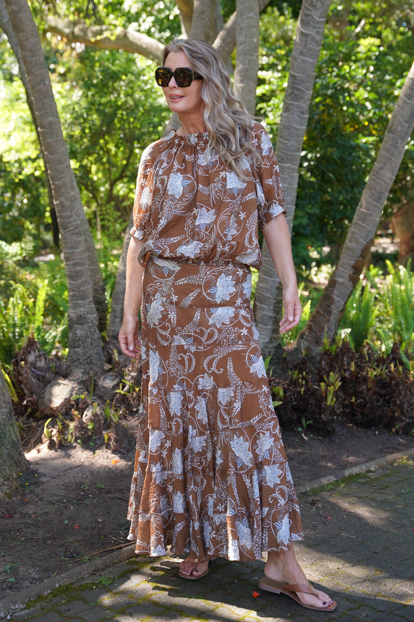 Our Bloom Top is contemporary, fun & perfect for this season. It features a beautifully  elasticated round neck, raglan short sleeves with elasticated cuffs & an elasticated hem,  that sits at your waist. The elasticated neckline creates beautiful gauging & we love that this top can also be worn off the shoulder, showing off your Summer tan. Wear with our Coffee  Flare Leg Pants or Coffee Summer Pants & finish off your look with our Tan Leather Flip Flops or our Amber Woven Sandals. For an all in one dress look, wear with our matching Nutmeg Ribbon Skirt.