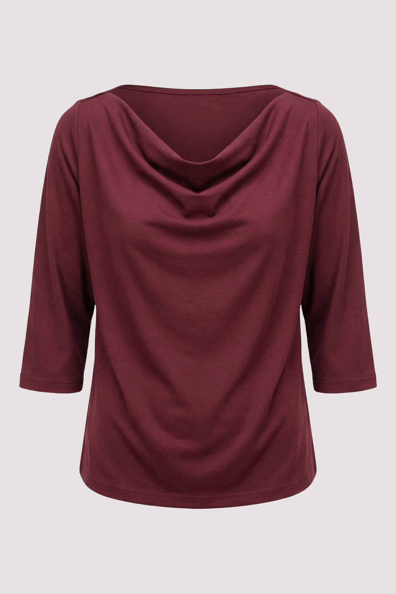 Sophisticated & elegant, our Burgundy Cowl Neck Top features a chic draped neckline, that creates an artful silhouette with a touch of feminine charm, 3/4 sleeves, a slightly boxy shape & straight hem. Team up with our Burgundy Ribbon Skirt or our Burgundy Bib Pants & our Burgundy Leather Flip Flops.